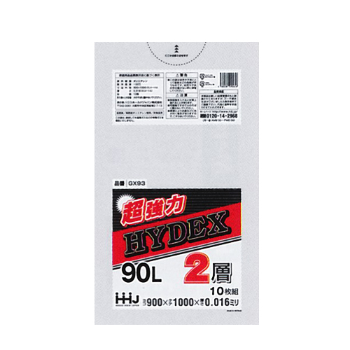 HOME > ポリ袋 90Lサイズ > GX 2層構造ポリ 高強度 90ℓ GX-93 半透明LL/HD 900×1000×0.016 入数600枚