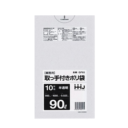HOME > ポリ袋 90Lサイズ > GF 業務用取っ手付きポリ袋 90ℓ GF-93 半透明HDPE 900×1000×0.025 入数400枚